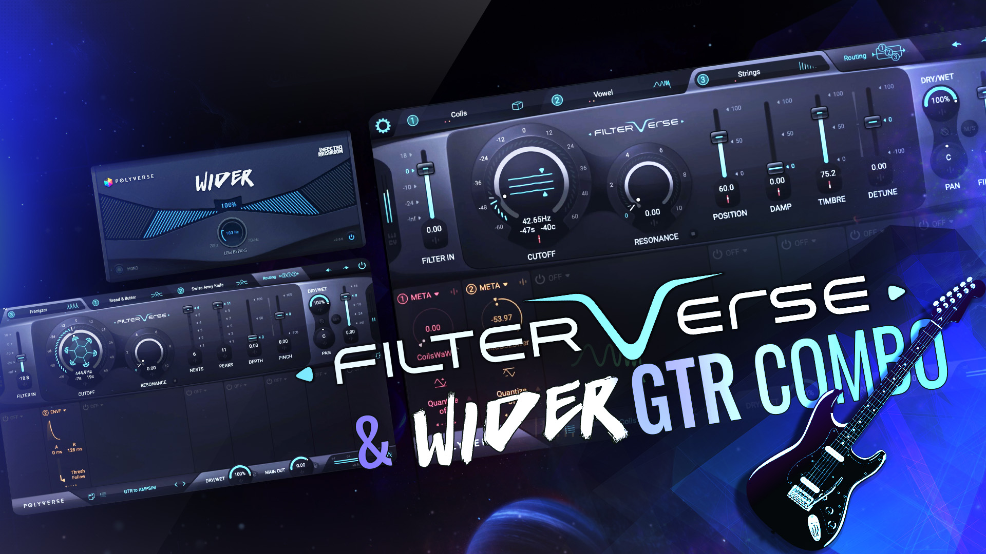 In this demonstration, we explore the synergy between Filterverse and Wider. By stacking intricate filtering with wide imaging, we’re able to create an electric guitar tone that cuts through the mix with a huge stereo footprint.