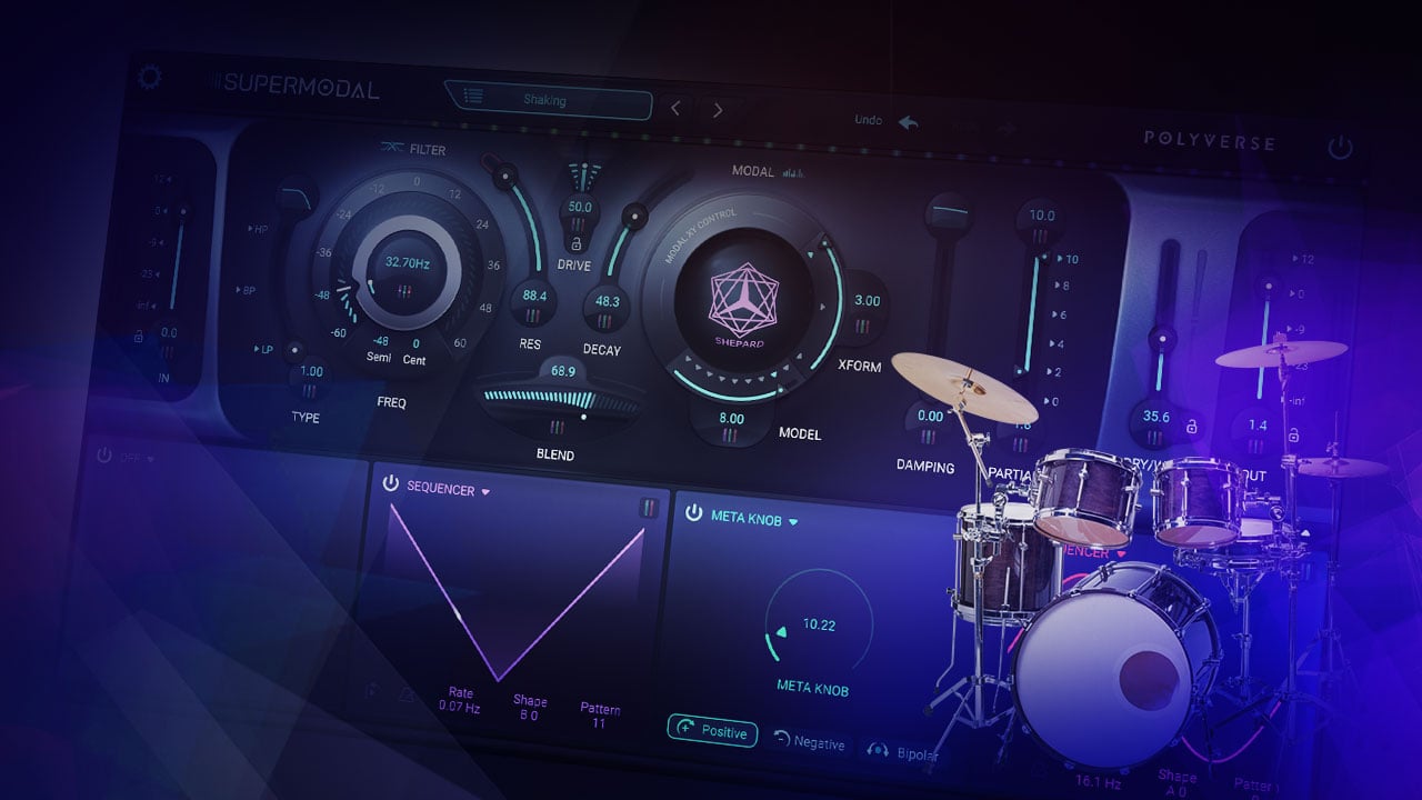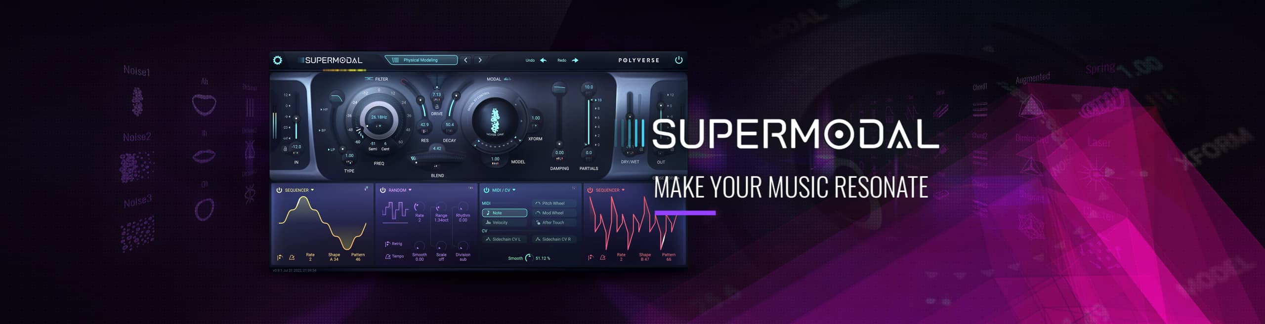 Supermodal is a true modal filter, a unique effect that uses hundreds of precisely tuned bandpass filters to simulate the resonant qualities of real-world objects. This core engine allows it to go far beyond traditional filtering. Use it as a classic filter or a next-generation phaser or push it to re-synthesize new sounds: turning a drum loop into a melody or a static pad into an evolving, cinematic texture.