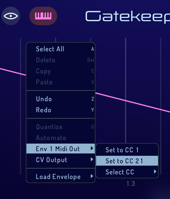 - Right click an envelope in gatekeeper and choose: Env 1 MIDI Out->Set to CC 1