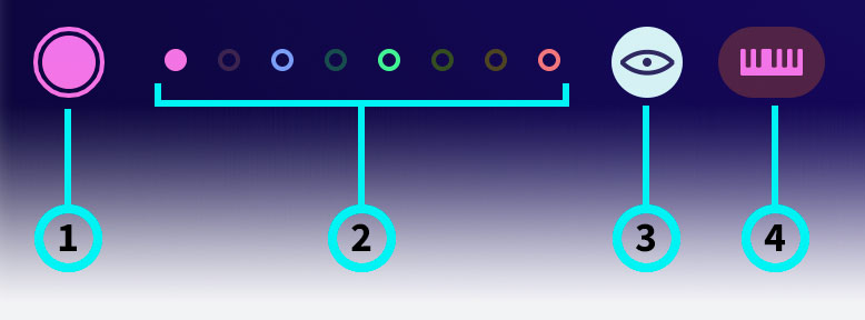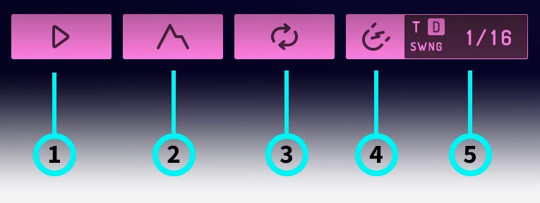 ② Envelope Selectors – select one of the 8 envelopes for editing. Combine the envelopes to create panning effects, polyrhythms, layered parts or trigger them separately