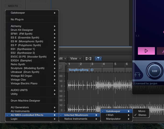 - Open a midi channel and drag Gatekeeper onto it.