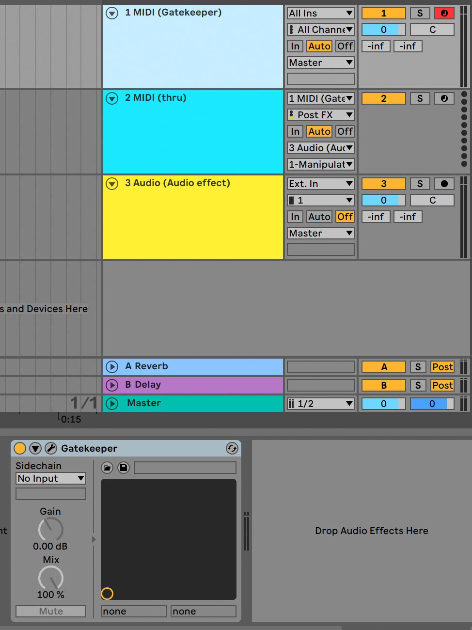 - Set the midi track to route between gatekeeper to the effect