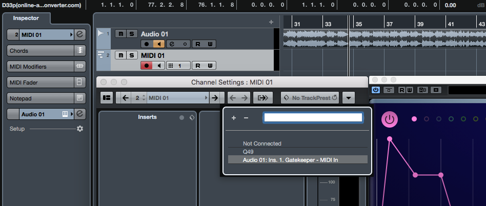 - Set the MIDI track’s output to the audio track with Gatekeeper .