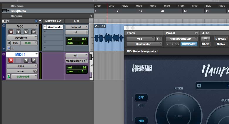 - Mute the audio track, as its signal is now being routed through Manipulator.