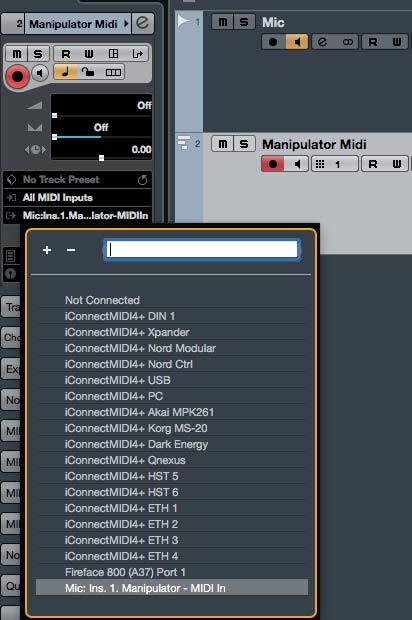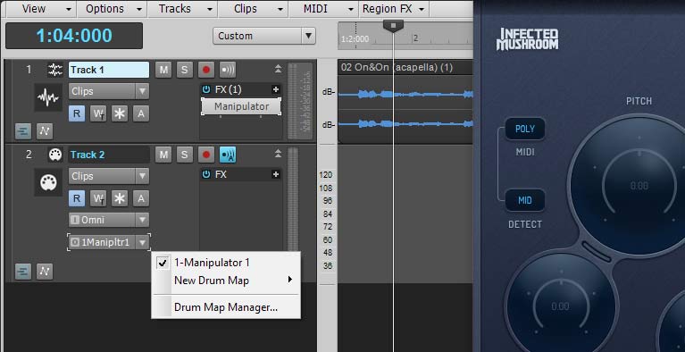 - Set the MIDI trackβs output to the audio track with Manipulator.