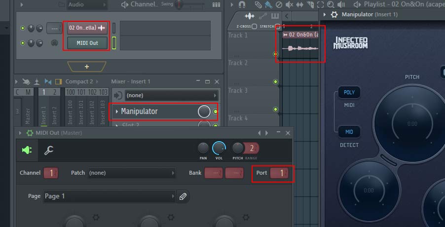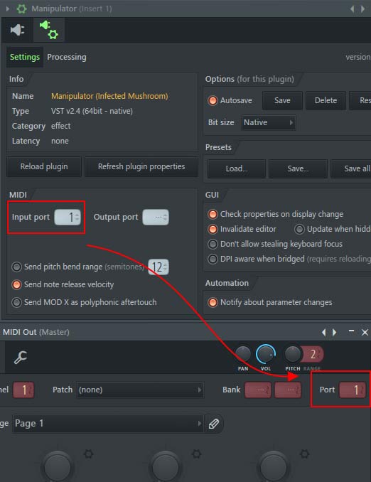 - Set the Manipulator MIDI input port to 1 as well