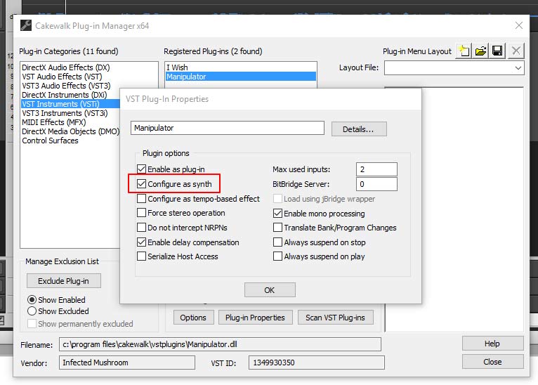 - Configure Manipulator as a synth in βCakewalk Plug-in Managerβ