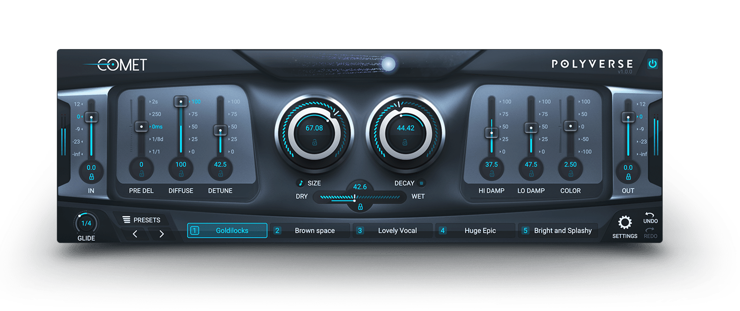 Enhance your vocals, melodic instruments, and drums with the beauty of Polyverse Comet — a reverb plug-in of unparalleled lushness and versatility. Envelop your sound in breathtaking textures of unbelievable clarity while creating living, breathing space in real time with Comet’s unique preset morphing capabilities. Experience trails of beauty that are pristine, dramatic, and one-of-a-kind.