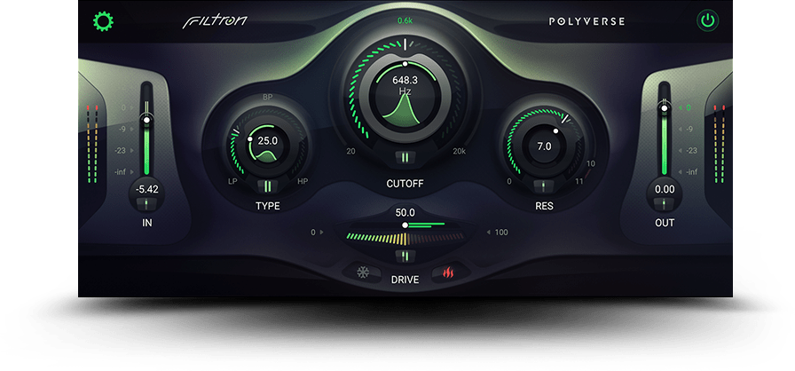 Filtron’s internal saturator has a warm soft sounding curve. The filter sounds different depending on the input level.