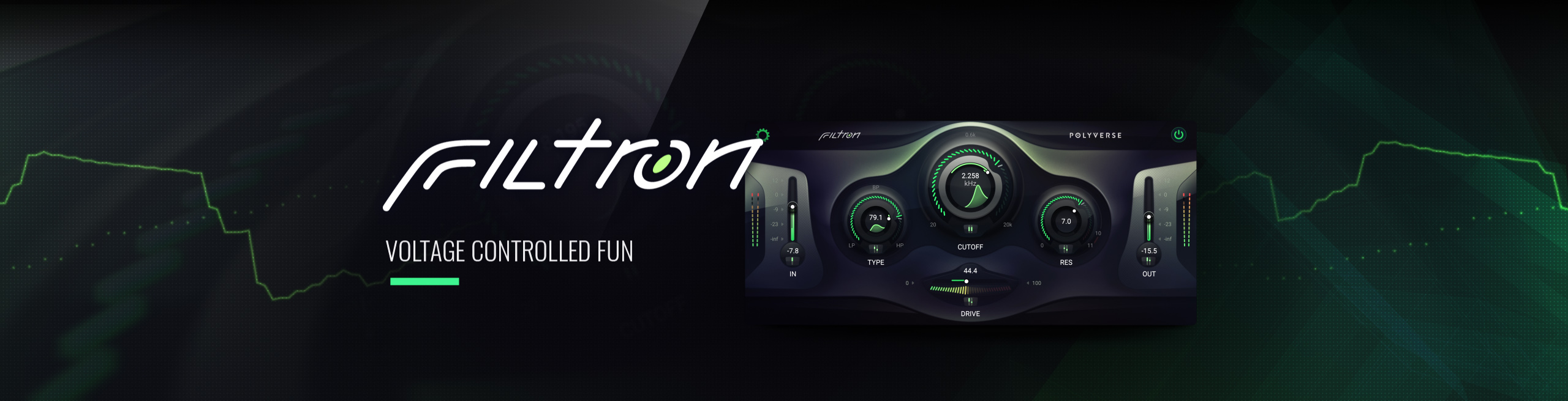 Filtron is a 12dB state variable filter that can smoothly transition between lowpass, bandpass, and highpass. It is capable of self-oscillation with resonance levels that can reach up to 11! Filtron also features a fat sounding internal saturation algorithm and a sizzly post overdrive with two modes to choose from: cold and hot.